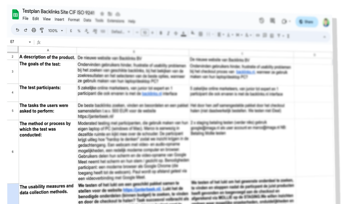 Bij de start: Met behulp van het team van Backlinks.nl hebben we een scernario geschets waaruit bleek dat met name nieuwe potentiele klanten geholpen zouden zijn met een zeer duidelijke interface, die ook uitleg biedt waar nodig. Ik heb een gestructureerd testplan opgesteld waarmee ik 5 participanten uit de doelgroep ‘online marketeers’ heb begeleid tijdens het zoeken en bestellen van backlinks voor een fictieve opdrachtgever.